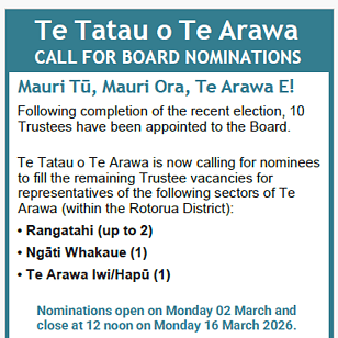 Te Tatau o Te Arawa is calling for nominations to fill remaining vacancies on its Board of Trustees.