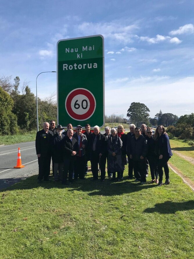 A new Māori speed sign at the southern gateway into Rotorua has been unveiled this morning heralding the start of Māori Language Week.